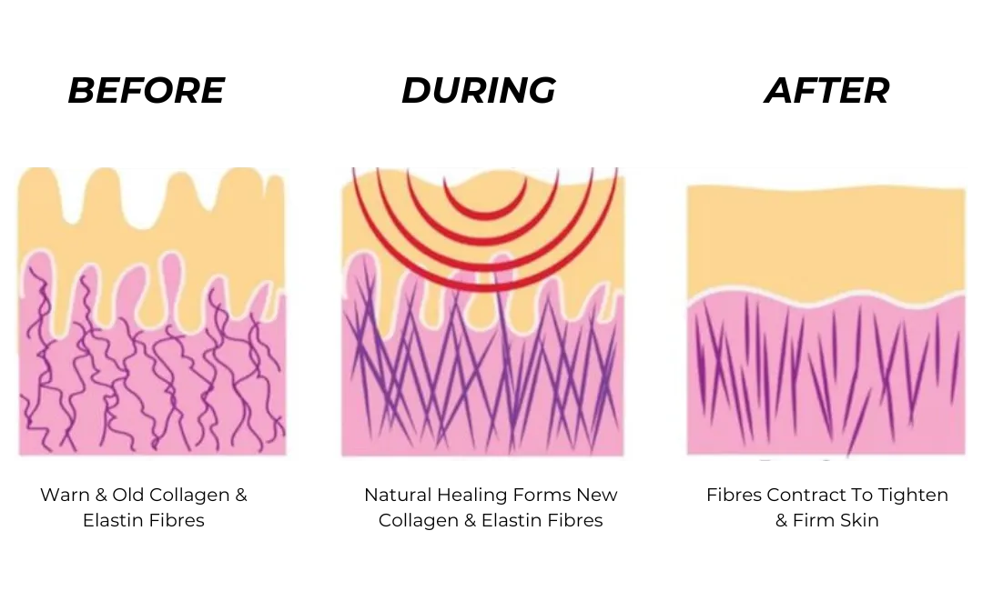 Radio-Frequency Tightening: To lift & tighten your skin, reduce fine lines & wrinkles, stimulate collagen & elastin production.